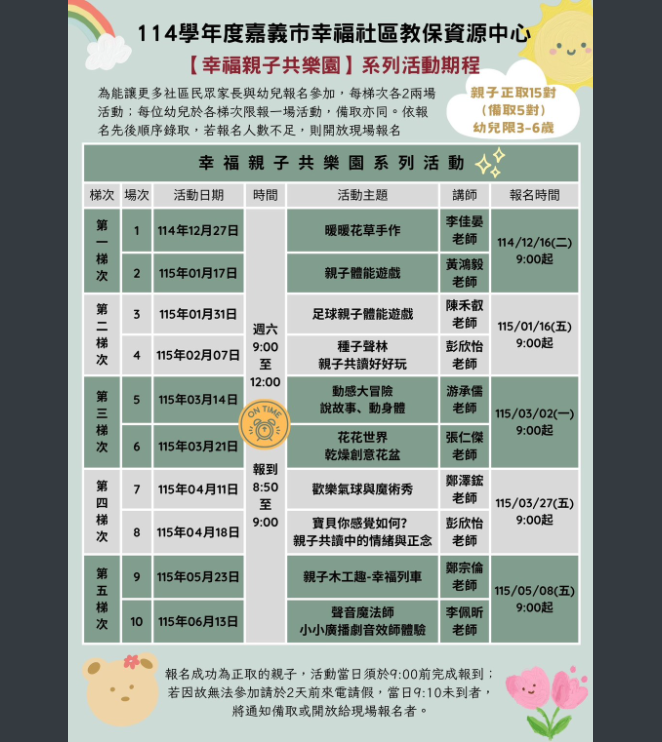 幸福幼兒園辦理「114學年度幸福社區教保資源中心【幸福親子共樂園】系列活動」