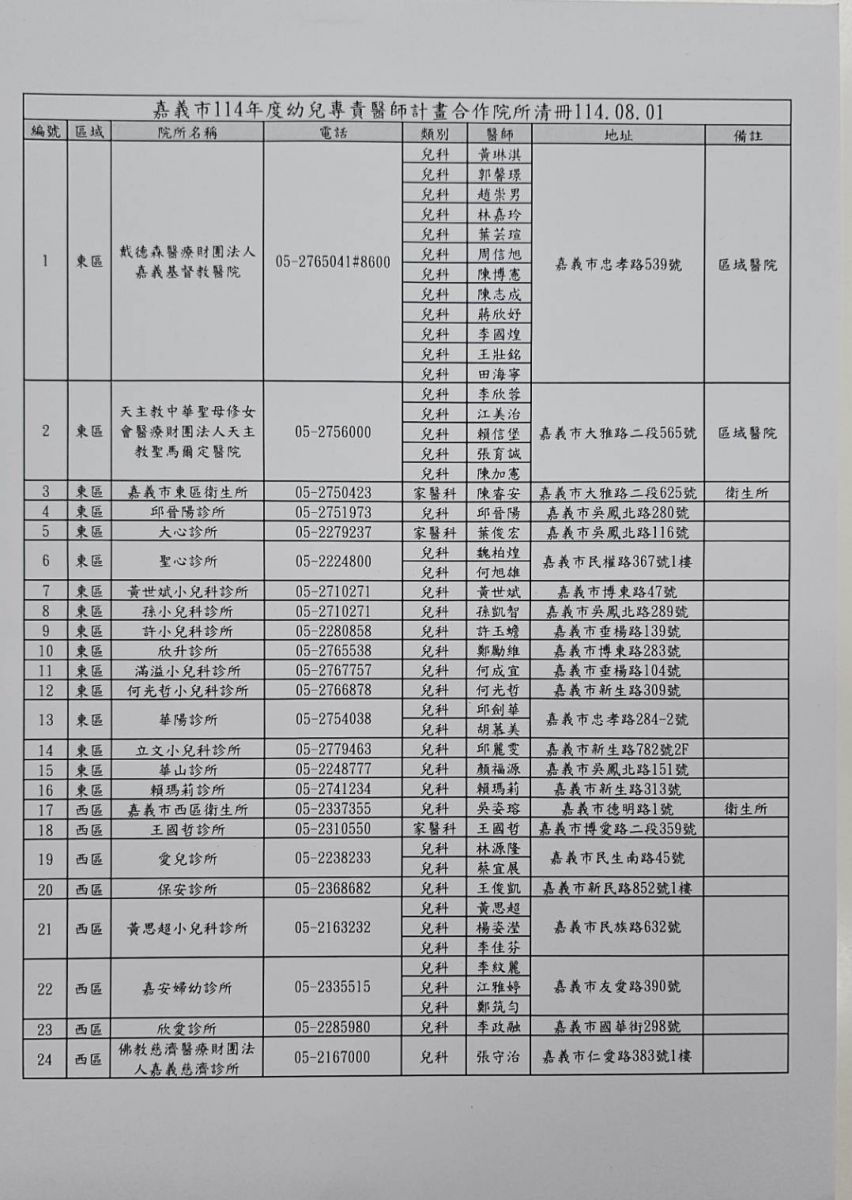 114-115幼兒專責醫師制度