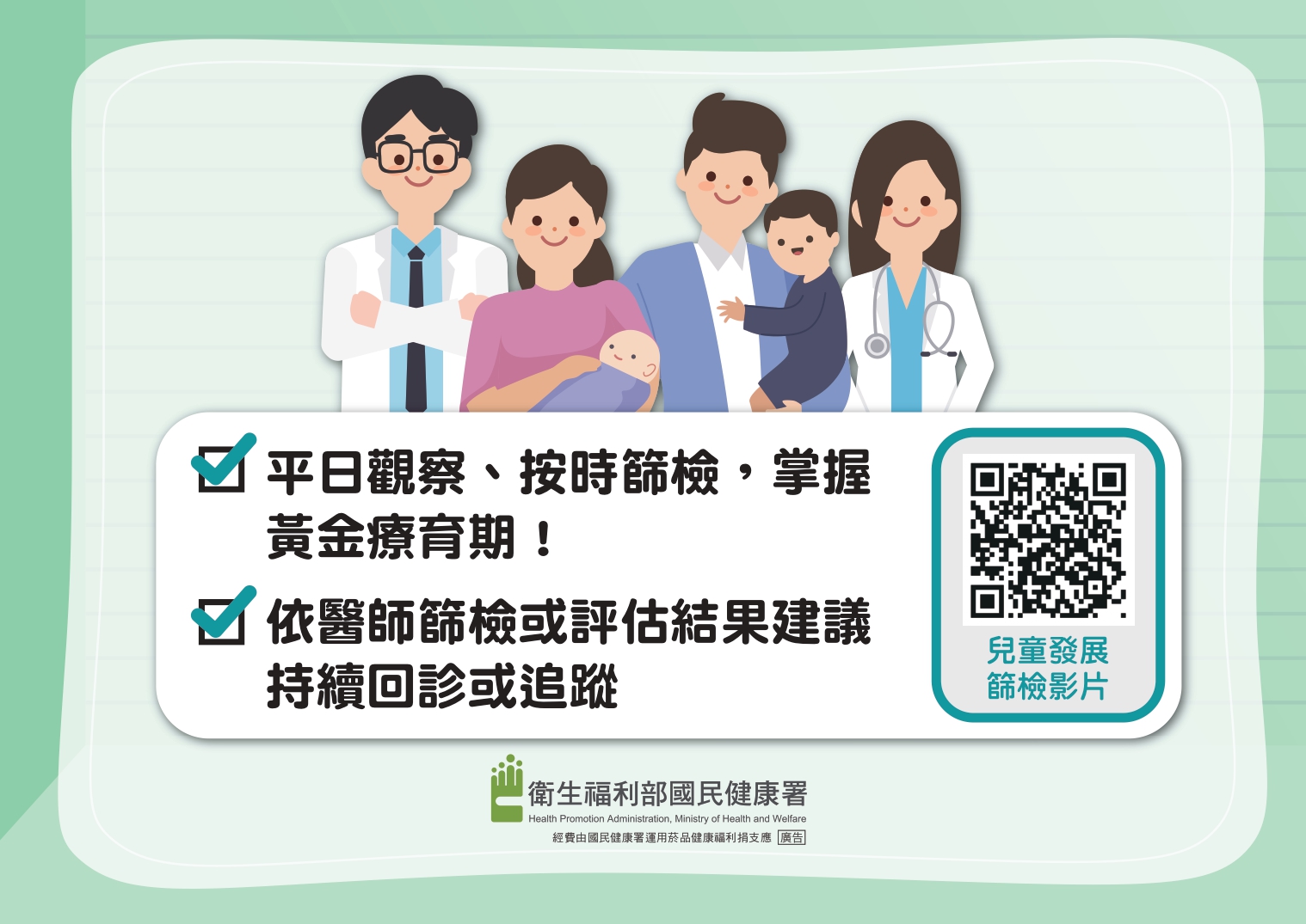每一次的篩檢,都是你給孩子最珍貴的禮物。現在就拿出兒童健康手冊及健保卡去兒童發展院所作篩檢吧!