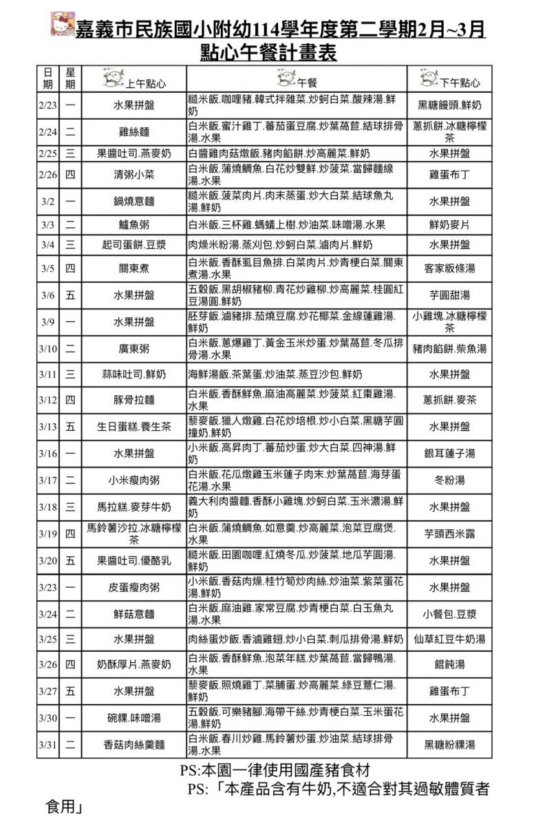 本園一律使用國產豬食材,請家長放心。