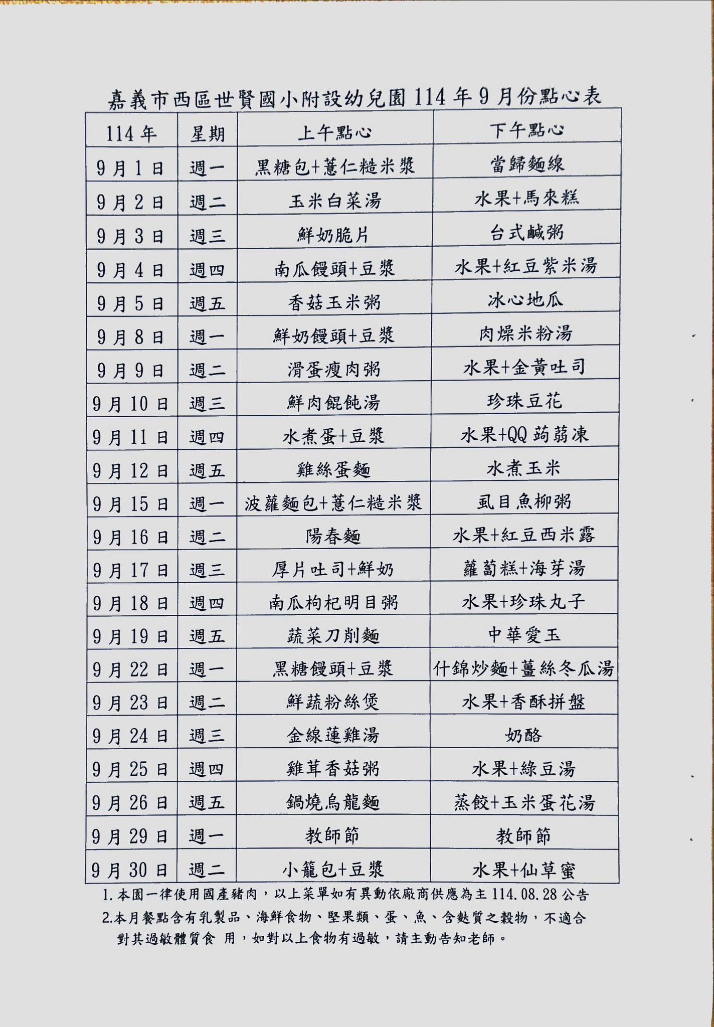 9月點心表
