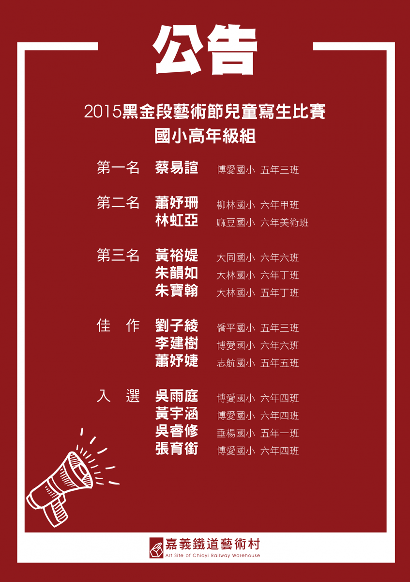黑金段嘉義鐵道藝術村寫生比賽得獎囉!