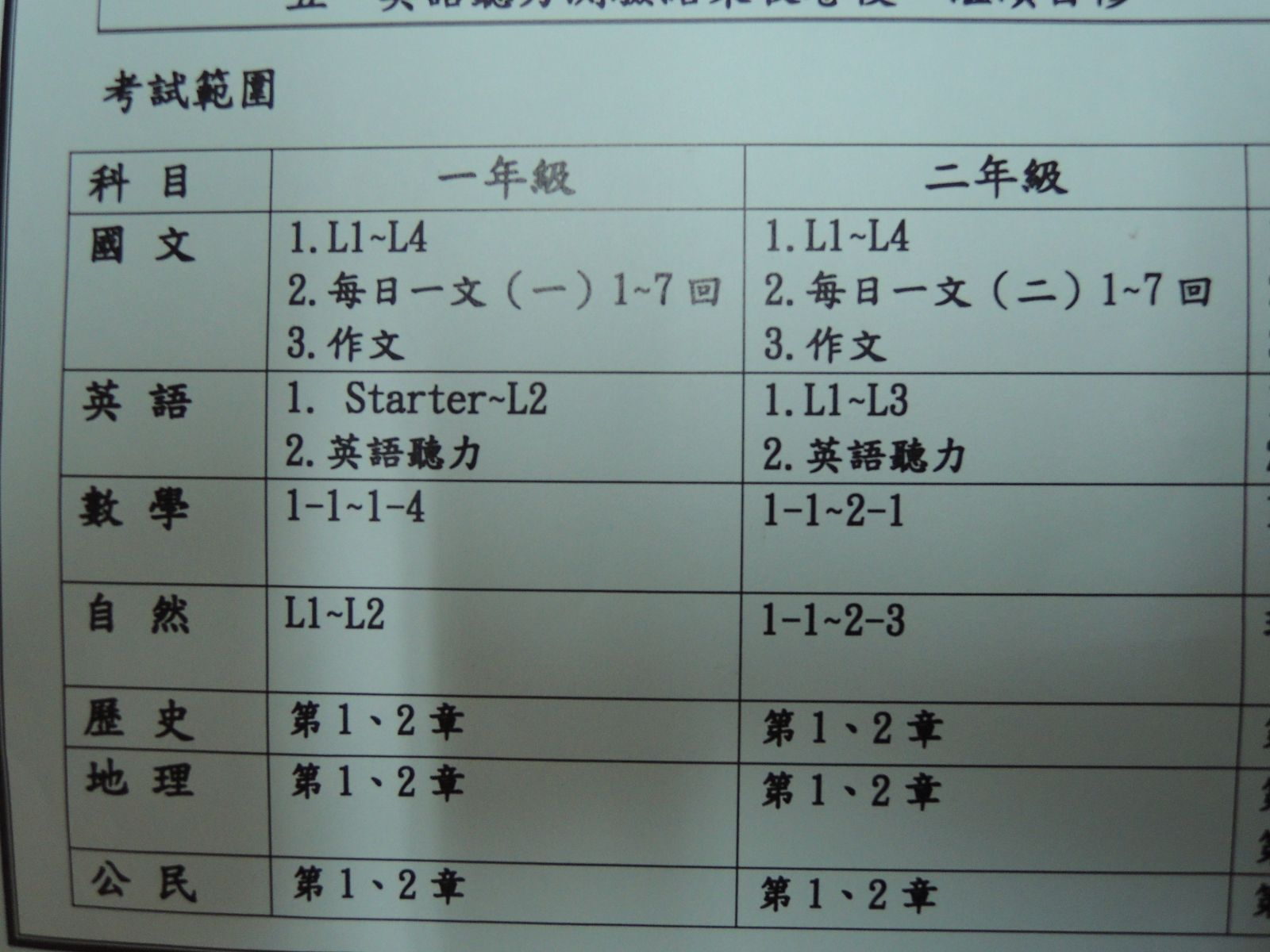 第一次段考範圍