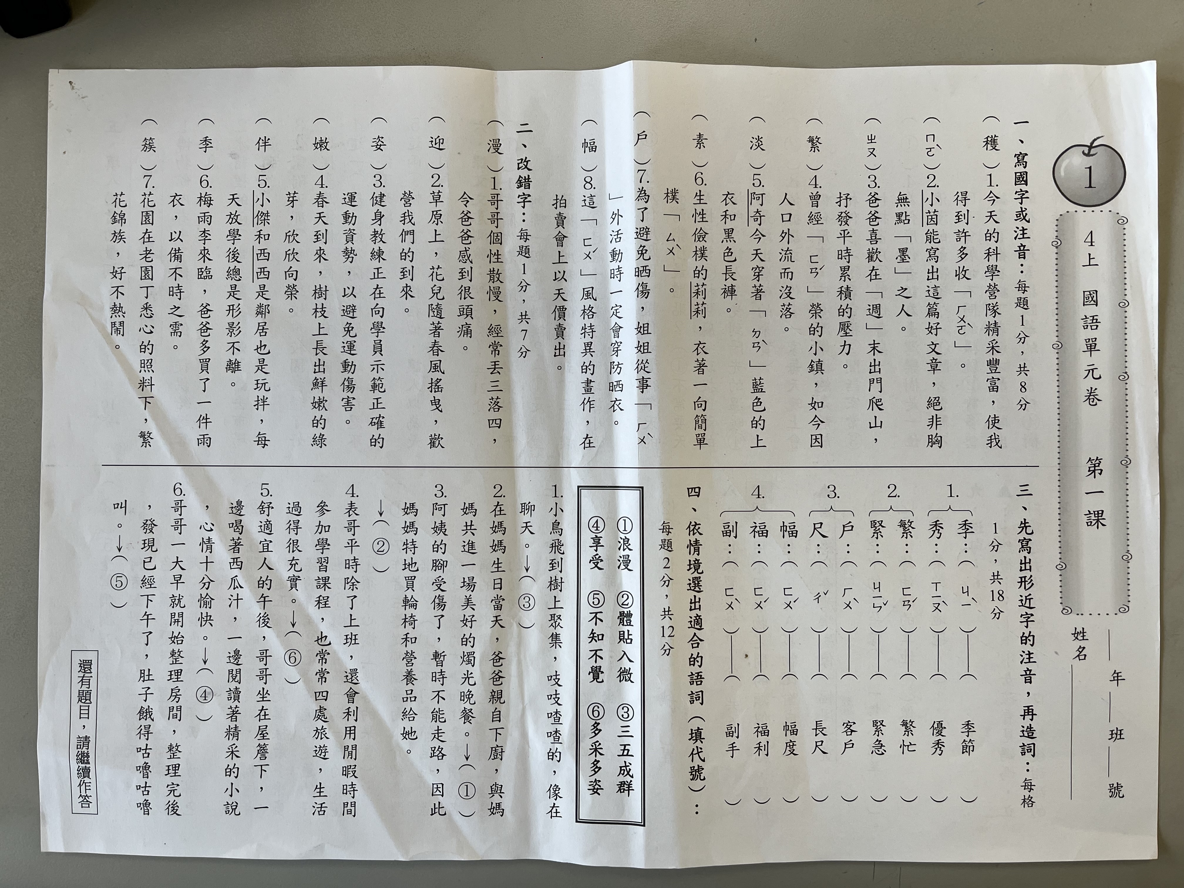 (四下)國語語詞作業
