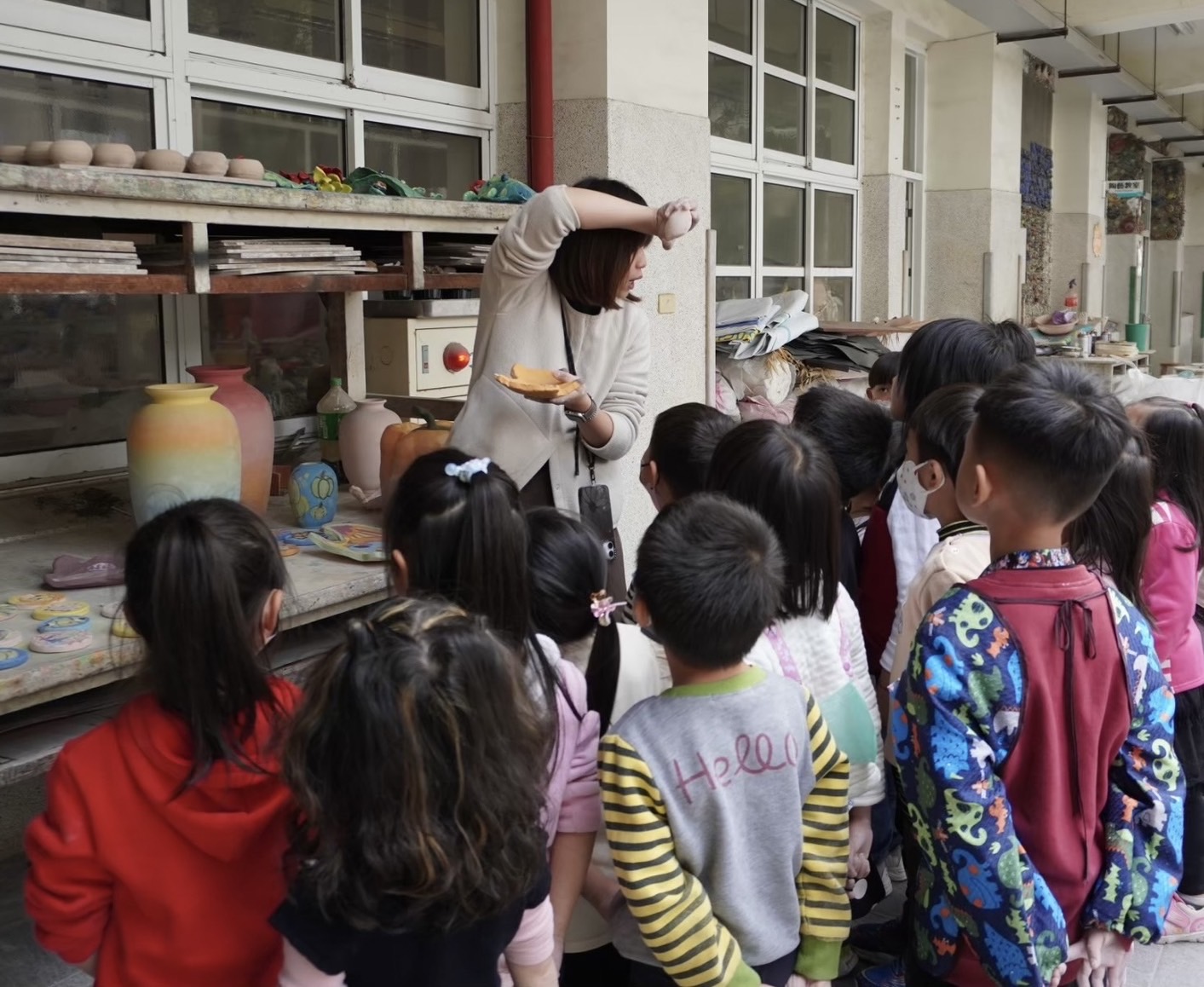 在充滿人文藝術氣息的大同校園裡,彩虹班的寶貝不僅觀察到許多跟陶土有關的作品,此次也親身感受捏陶的樂趣。