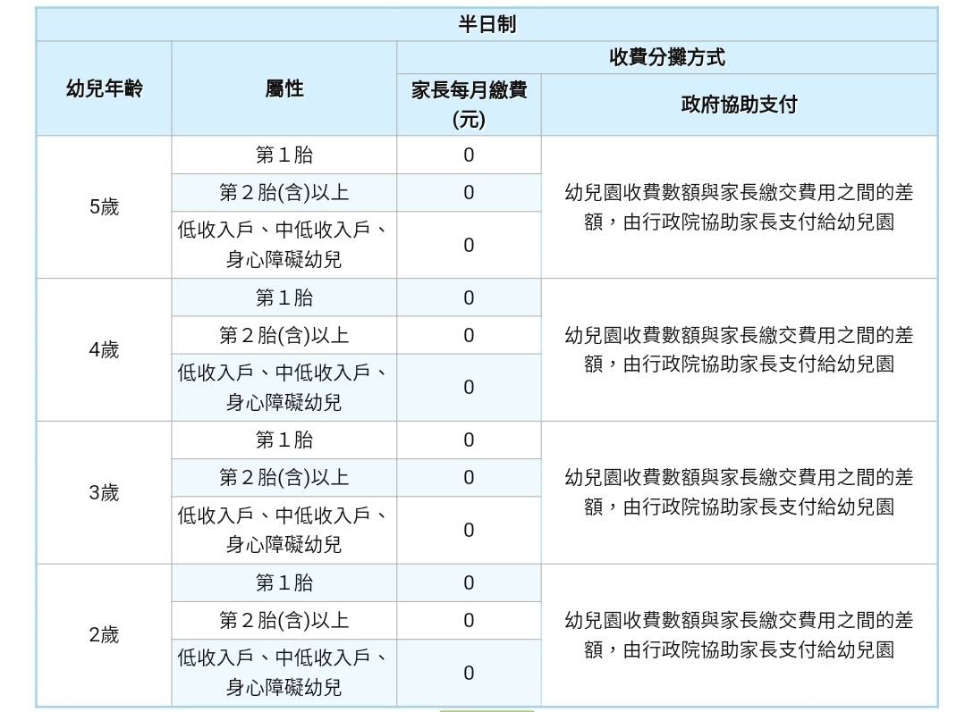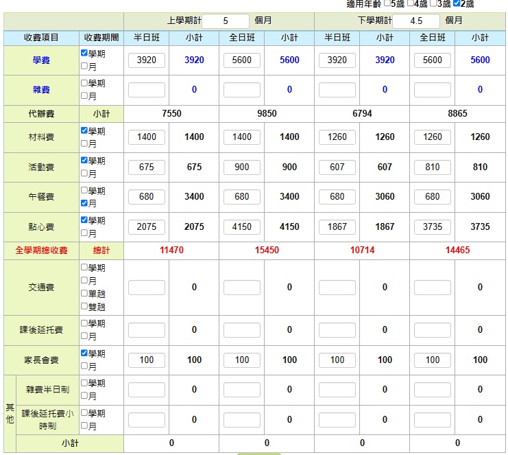 114學年度第1學期 嘉義市西區垂楊國民小學附設幼兒園家長每月繳費數額試算表