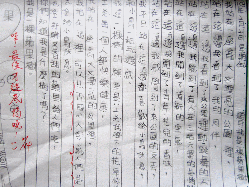大多數的孩子都能寫出小短文喔~~超棒的呢!!