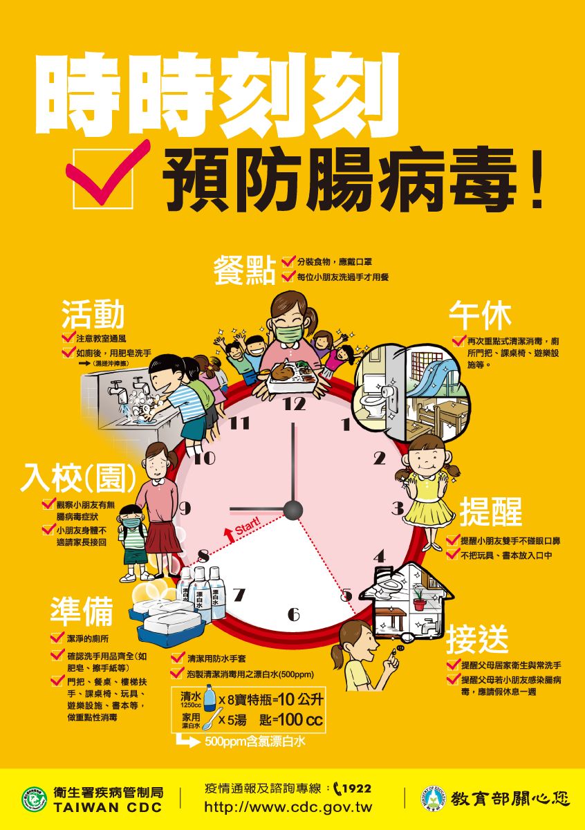 最近腸病毒肆虐,請家長在家要多多督促孩子常洗手喔!若孩子有身體不適,如發燒、喉嚨痛、手、腳及膝蓋出現水泡...等症狀,請立即帶孩子給醫生看喔!