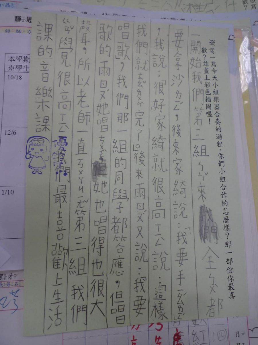 ㄇ字型座位第2天--102.3.13--六何法與造句討論... 顏怡欣
